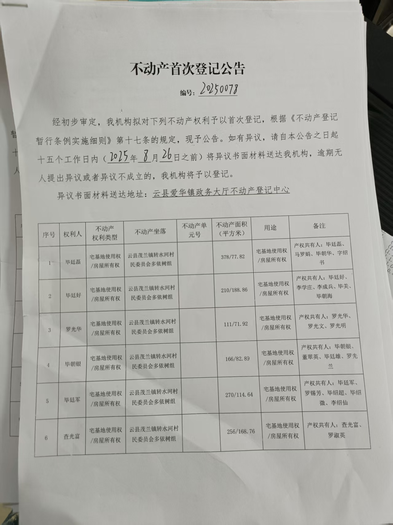 不动产首次登记公告(20250078)