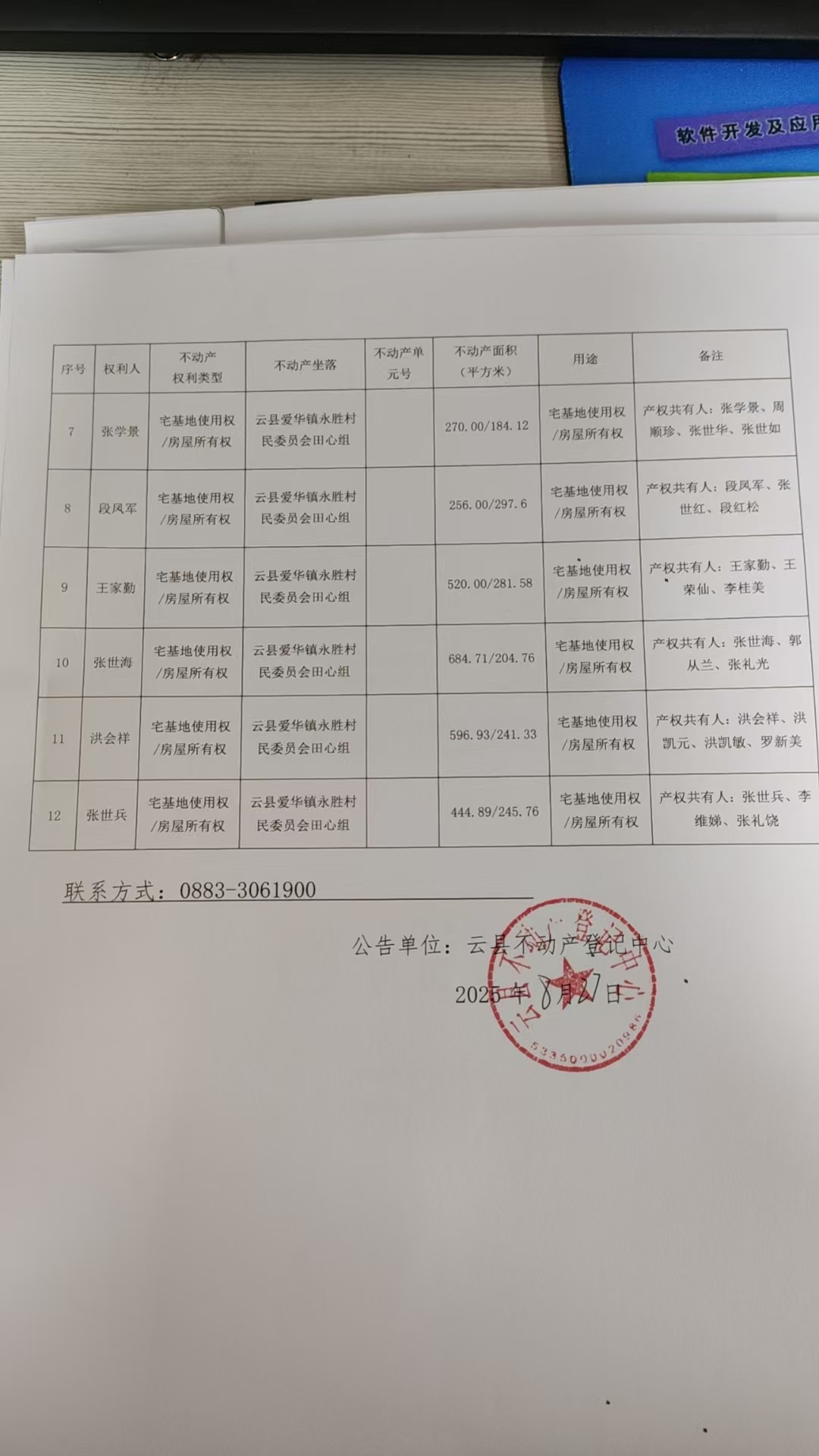 不动产首次登记公告(张学勤等12户 20250117)