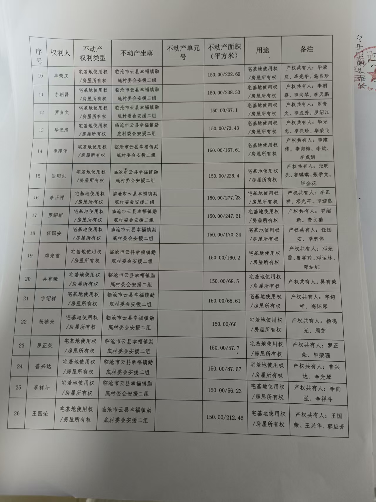 不动产首次登记公告(李成花等36户 20250124)